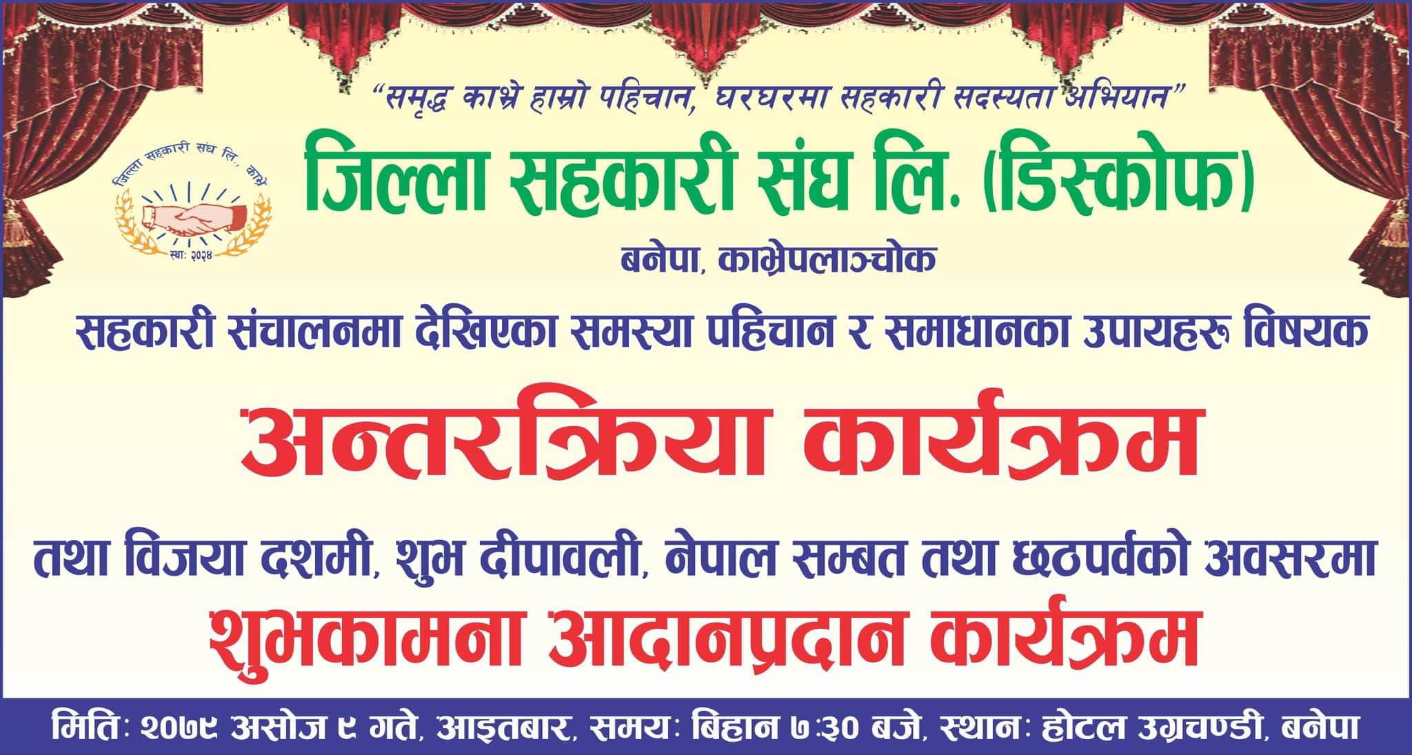 काभ्रे जिल्ला सहकारी संघ लि.को आयोजनामा अर्न्तक्रिया कार्यक्रम सम्पन्न(अफिल सहित)