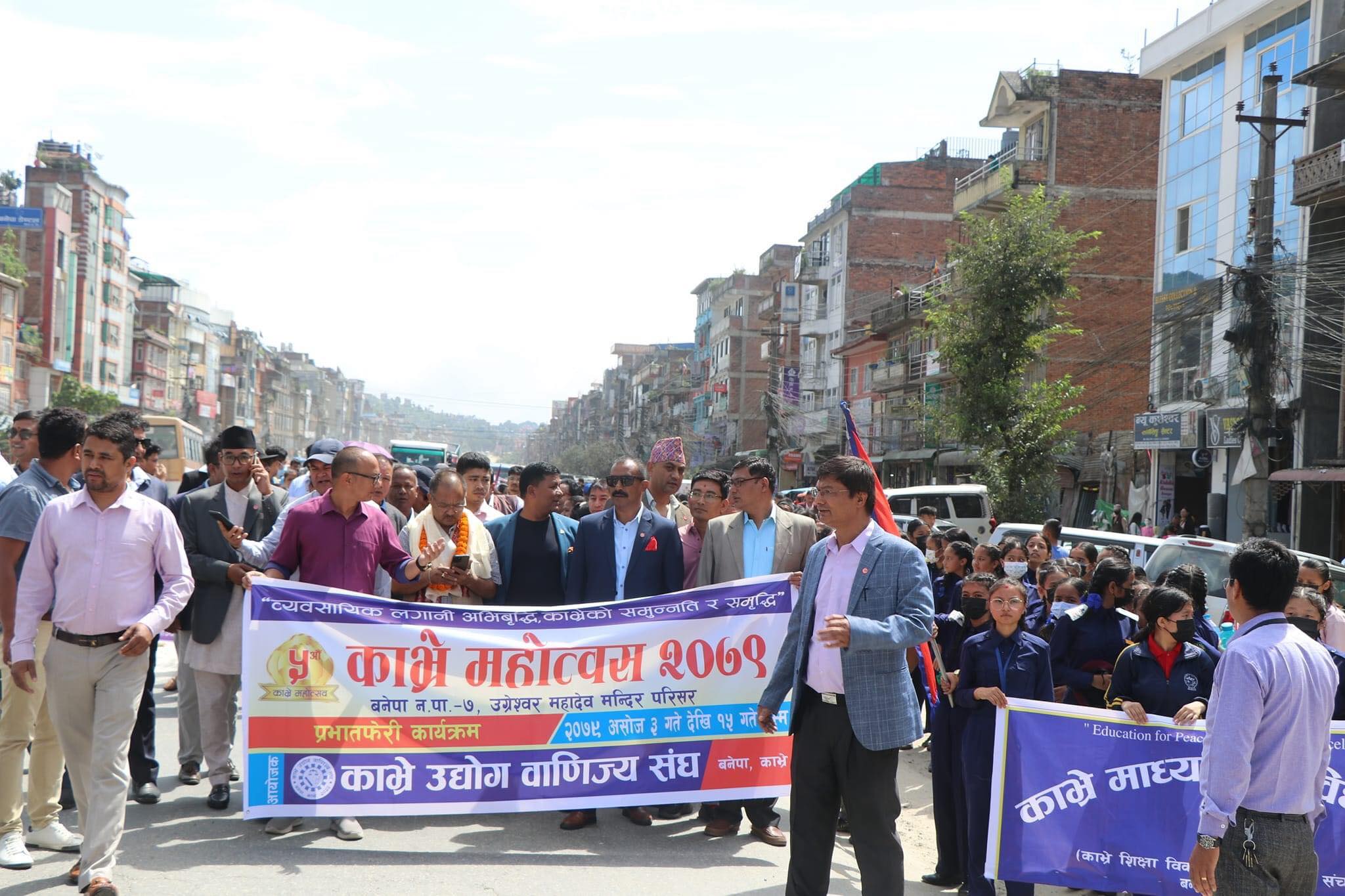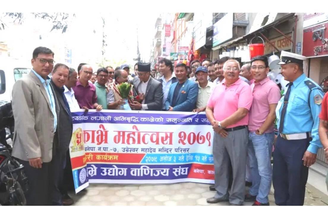 बनेपा । बनेपामा आजबाट काभ्रे महोत्सवको औपचारिक रुपमा सुरुवात भएको छ । काभ्रे उद्योग वाणिज्य संघद्धारा आयोजित काभ्रे महोत्सबको आज उत्घाटन भएको थियो । महोत्सवको उत्घाटन बागमती प्रदेश सरकारका उद्योग बाणिज्य तथा आपुर्ति मन्त्री मिलनबाबु श्रेष्ठले गर्नुभएको थियो । सोमबारबाट सुरु भएको महोत्सवमा एक सयभन्दा धेरै स्टलहरु राखिएका छन् । महोत्सवको मुख्य नारा ब्यावसायिक लगानी अभिबृद्धि, काभ्रेको समुन्नति र समृद्धी हो । दशैको अवसरमा आयोजित काभ्रे महोत्सवमा परम्परागत कला सँस्कृति, औद्योगीक व्यापार, घरेलु, कृषि,पर्यटन प्रर्वद्धनको निमित्त आयोजना गरिएको महासचिव रविन्द्र वैदारले बताए ।